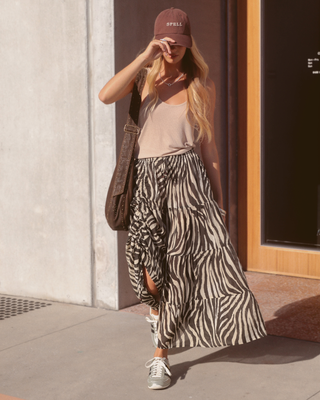 Pair your off duty essentials like sneakers, caps & staple tanks with a statement maxi skirt to give your style a feminine twist.